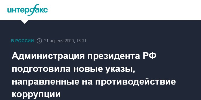Администрация президента РФ подготовила новые указы, направленные на противодействие коррупции