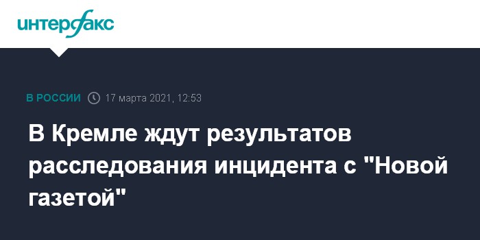 В Кремле ждут результатов расследования инцидента с "Новой газетой"