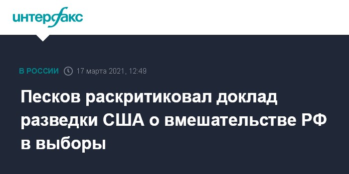 "Мы не согласны с выводами этого доклада в отношении нашей страны. Россия не вмешивалась и в предыдущие выборы, и не вмешивалась в упомянутые выборы в этом докладе в 2020 году. Россия не имеет никакого отношения к каким-то кампаниям против кого-бы то ни было из кандидатов. В этой связи этот доклад мы считаем неправильным, он абсолютно безосновательный и бездоказательный", - сказал Песков журналистам в среду.