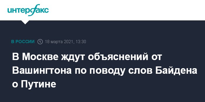 В Москве ждут объяснений от Вашингтона по поводу слов Байдена о Путине