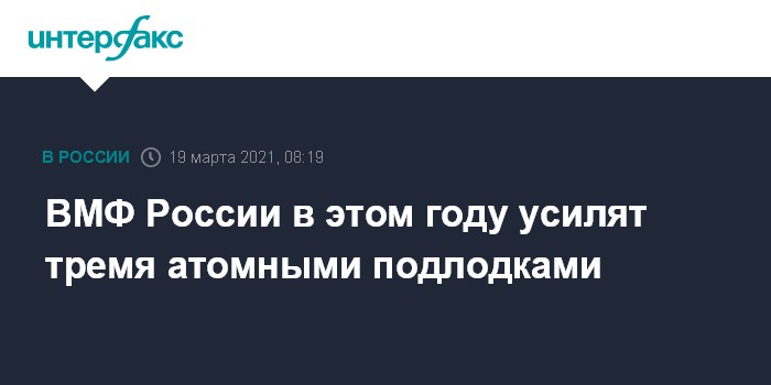 Москва. 19 марта. INTERFAX.RU - Военно-морской флот России в 2021 году получит в боевой состав три атомные подводные лодки (АПЛ), сообщил главком Военно-морского флота РФ адмирал Николай Евменов.