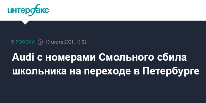 Информированный источник уточнил "Интерфаксу", что Audi имеет номера серии, связанной с правительством Петербурга. По данным источника, автомобиль принадлежит государственному бюджетному автотранспортному учреждению "Смольнинское", за рулем находился 56-летний водитель учреждения.