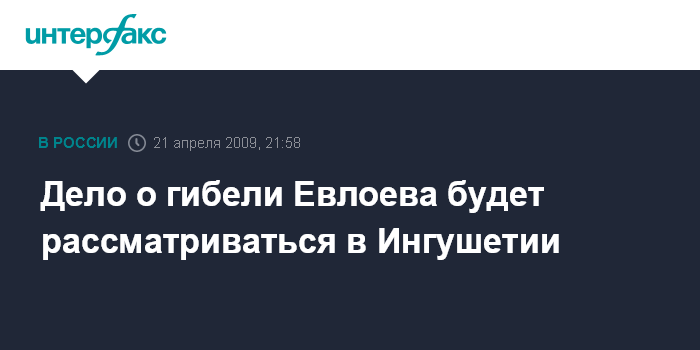 Москва. 21 апреля. INTERFAX.RU - Верховный суд Ингушетии признал законным отказ перенести рассмотрение дела о гибели владельца сайта "Ингушетия.ру" Магомеда Евлоева в другой субъект Федерации.