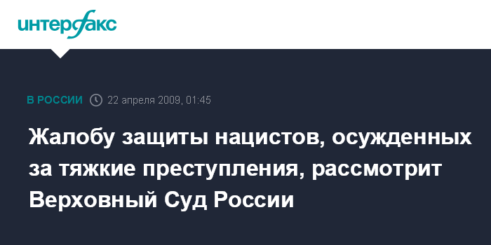 Жалобу защиты нацистов, осужденных за тяжкие преступления, рассмотрит Верховный Суд России
