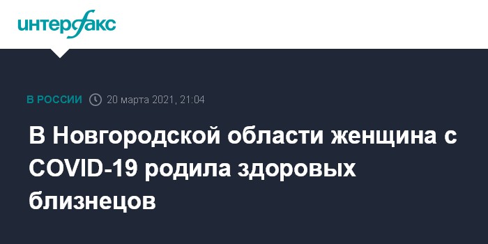 Москва. 20 марта. INTERFAX.RU - Инфицированная коронавирусом жительница Новгородской области благополучно родила здоровых близнецов, сообщили в субботу "Интерфаксу" в областном роддоме.