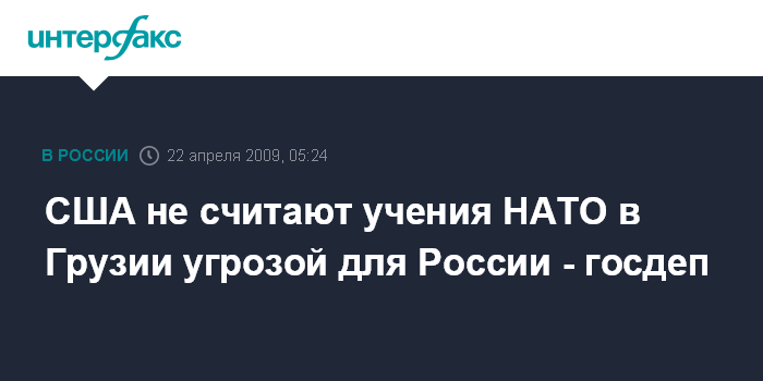 США не считают учения НАТО в Грузии угрозой для России - госдеп