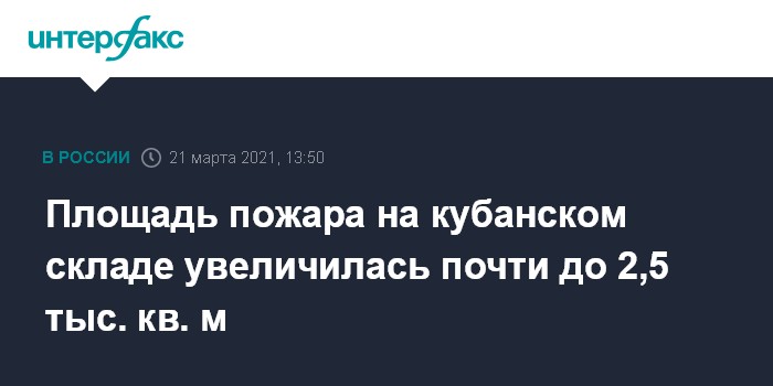 Москва. 21 марта. INTERFAX.RU - Площадь пожара в ангаре с автопокрышками в станице Динская Краснодарского края, который начался ранее в воскресенье, увеличилась, сообщил журналистам заместитель начальника ГУ МЧС России по краю Николай Платохин.