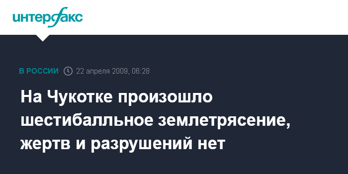 Анадырь. 22 апреля. ИНТЕРФАКС - ДАЛЬНИЙ ВОСТОК - На территории Анадырского района Чукотки произошло землетрясение.