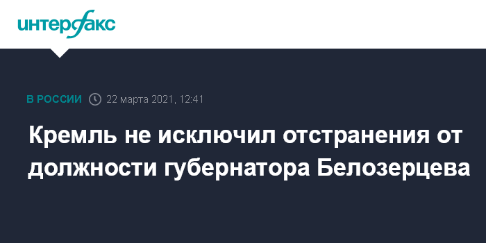 Кремль не исключил отстранения от должности губернатора Белозерцева