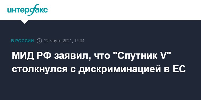 МИД РФ заявил, что "Спутник V" столкнулся с дискриминацией в ЕС