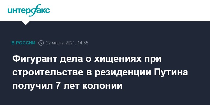 Фигурант дела о хищениях при строительстве в резиденции Путина получил 7 лет колонии