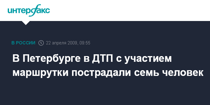 Москва. 21 апреля. INTERFAX.RU – В Калининском районе Петербурга в ночь на среду произошло ДТП с участием маршрутного такси, в результате которого пострадали семь человек, сообщили "Интерфаксу" в Главном управлении МЧС по городу.
