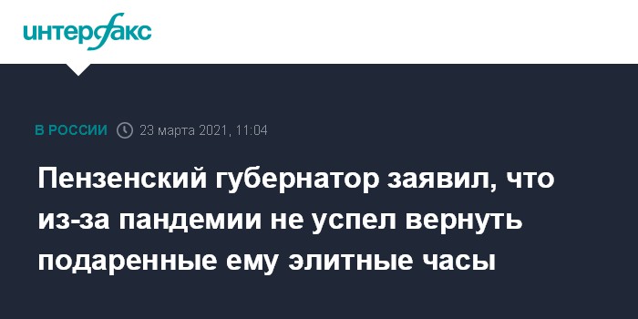 Пензенский губернатор заявил, что из-за пандемии не успел вернуть подаренные ему элитные часы