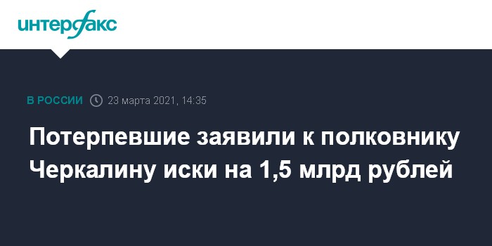 Потерпевшие заявили к полковнику Черкалину иски на 1,5 млрд рублей