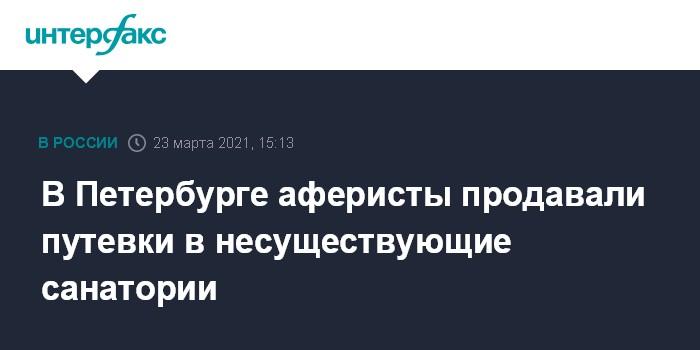 Москва. 23 марта. INTERFAX.RU - До 600 жителей Петербурга и Ленинградской области могли пострадать от действий аферистов, продававших путевки в несуществующие оздоровительные учреждения, сообщила во вторник официальный представитель МВД Ирина Волк.