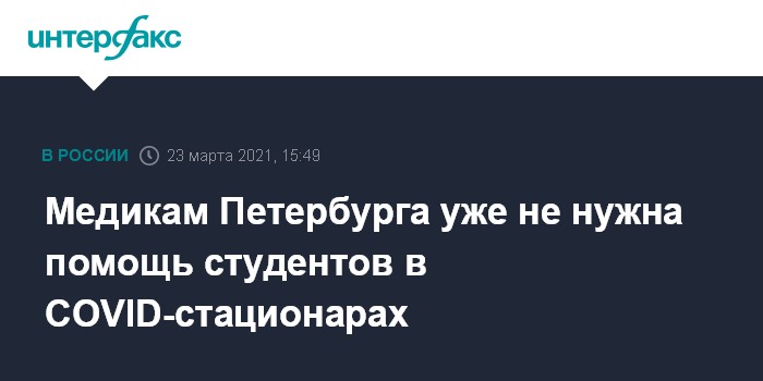 Как сообщила пресс-служба администрации, губернатор отметил, что в связи со снижением заболеваемости и общего количества активно больных дефицита основного медицинского персонала на данный момент в Петербурге нет: студенты и преподаватели медицинских вузов, привлекавшиеся к лечению COVID-больных, вернулись к очному обучению.