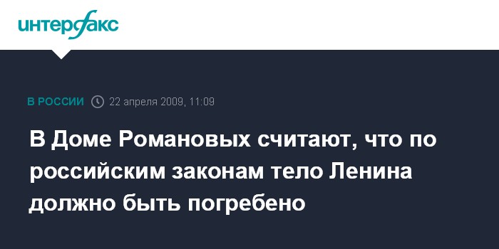 Москва. 22 апреля. INTERFAX.RU - В Императорском доме Романовых заявляют, что юридические основания для того, чтобы тело советского вождя Владимира Ленина оставалось в мавзолее на Красной площади, отсутствуют.
