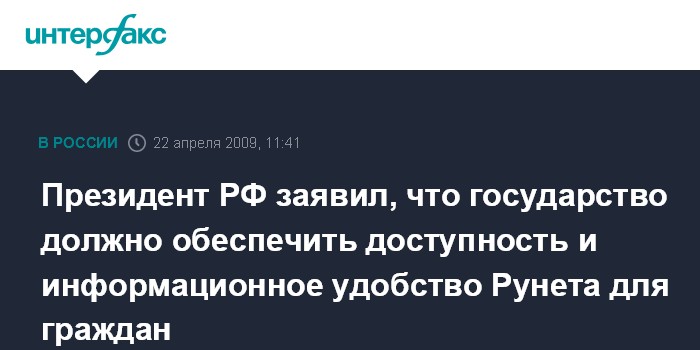 Президент РФ заявил, что государство должно обеспечить доступность и информационное удобство Рунета для граждан