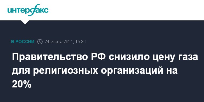 Правительство РФ снизило цену газа для религиозных организаций на 20%