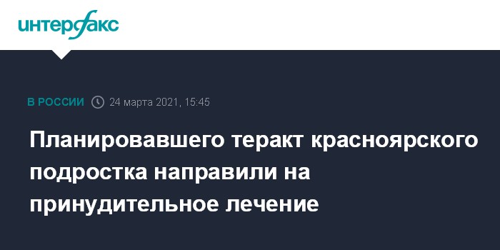 Москва. 24 марта. INTERFAX.RU - Первый Восточный окружной военный суд освободил от уголовной ответственности подростка из Красноярского края, готовившего террористический акт в школе, и направил его на принудительное психиатрическое лечение, сообщает в среду пресс-служба управления Генпрокуратуры по Сибирскому федеральному округу.