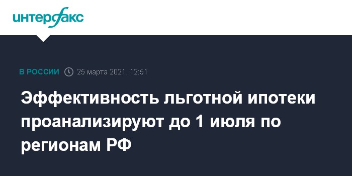Эффективность льготной ипотеки проанализируют до 1 июля по регионам РФ