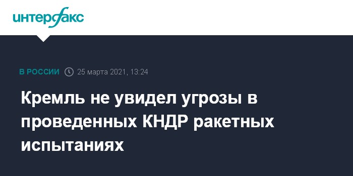 Москва. 25 марта. INTERFAX.RU - Запуск КНДР баллистических ракет не представляет угрозы для России, заявил пресс-секретарь президента РФ Дмитрий Песков.