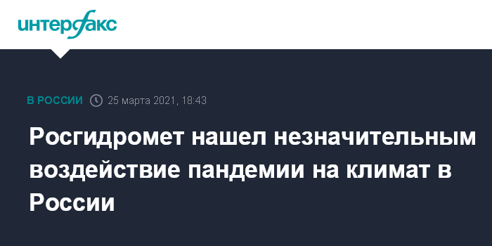 Росгидромет нашел незначительным воздействие пандемии на климат в России