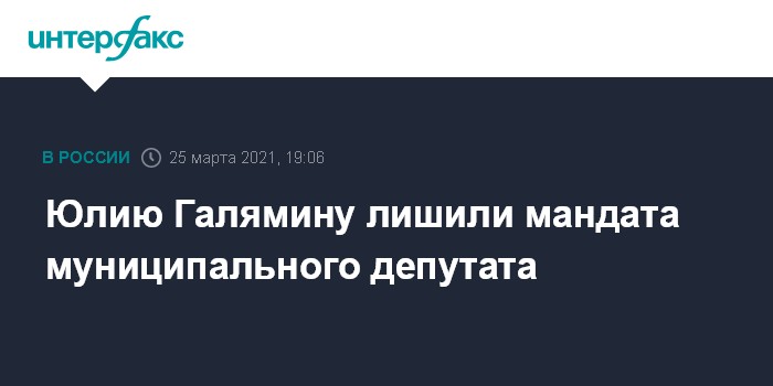 Москва. 25 марта. INTERFAX.RU - Совет муниципальных депутатов Тимирязевского округа решил досрочно прекратить полномочия Юлии Галяминой из-за вступления в силу приговора за неоднократное нарушение правил проведения митингов по так называемой "дадинской" статье.