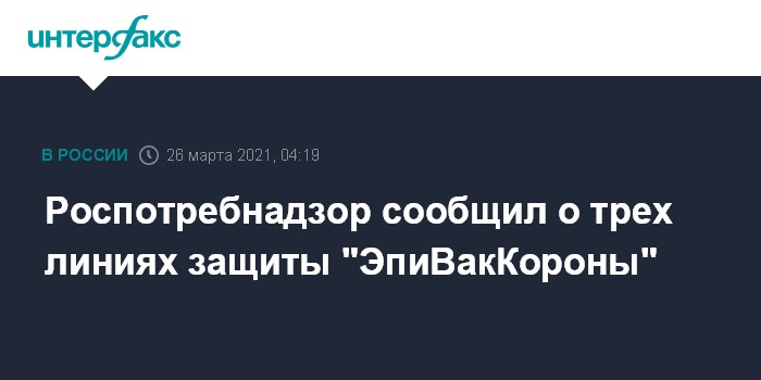 Москва. 26 марта. INTERFAX.RU - Вакцина "ЭпиВакКорона", разработанная в центре "Вектор" Роспотребнадзора, формирует три линии иммунной защиты, сообщается на официальном сайте ведомства в пятницу.