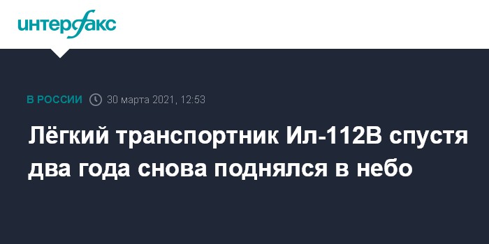 Как сообщал "Интерфакс", первый и единственный до этого момента полет Ил-112В состоялся ровно два года назад - 30 марта 2019 года.