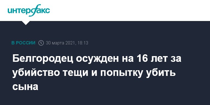 Белгородец осужден на 16 лет за убийство тещи и попытку убить сына