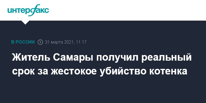 Москва. 31 марта. INTERFAX.RU - Куйбышевский районный суд Самары приговорил местного жителя к реальному сроку заключения за жестокое убийство животного, сообщает пресс-служба прокуратуры региона.