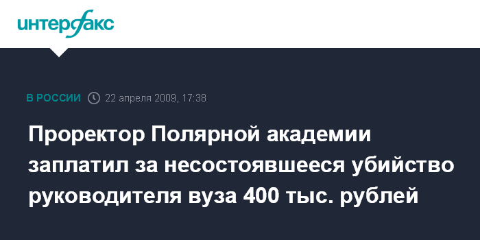 Проректор Полярной академии заплатил за несостоявшееся убийство руководителя вуза 400 тыс. рублей