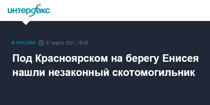 Ранее местные жители сообщили в соцсетях, что нашли несанкционированное кладбище животных на берегу реки Енисей в черте Красноярска. Очевидцы выложили несколько фотографий, на которых видны останки крупного скота, плавающие в воде, а также многочисленные туши и кости на берегу. По их данным, скотомогильник расположен вниз по течению на правом берегу Енисея, между краевым центром и поселком Березовка, который находится ниже по течению реки.