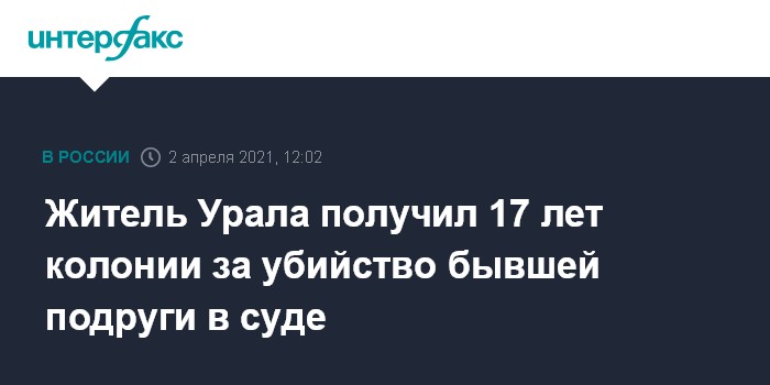 Житель Урала получил 17 лет колонии за убийство бывшей подруги в суде