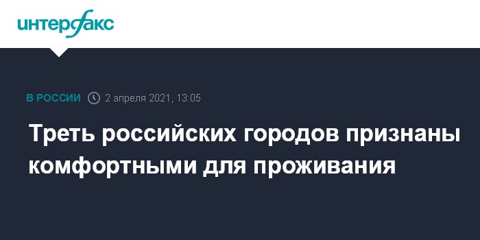 Москва. 2 апреля. INTERFAX.RU - В России 375 из 1 116 городов признаны благоприятными для жизни граждан, сообщил в пятницу замгендиректора ДОМ.РФ Денис Филиппов по итогам расчета индекса качества городской среды за 2020 год.