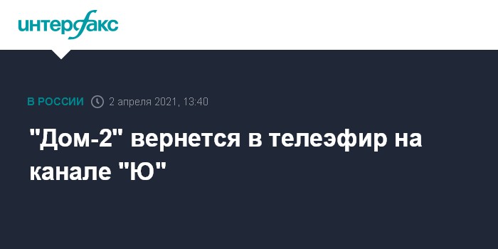 Москва. 2 апреля. INTERFAX.RU - Реалити-шоу "Дом-2", которое было закрыто на ТНТ (принадлежит холдингу "Газпром-медиа) в конце прошлого года, перезапускается на телеканале "Ю" (входит в холдинг "Медиа 1"), первый выпуск выйдет 19 апреля.