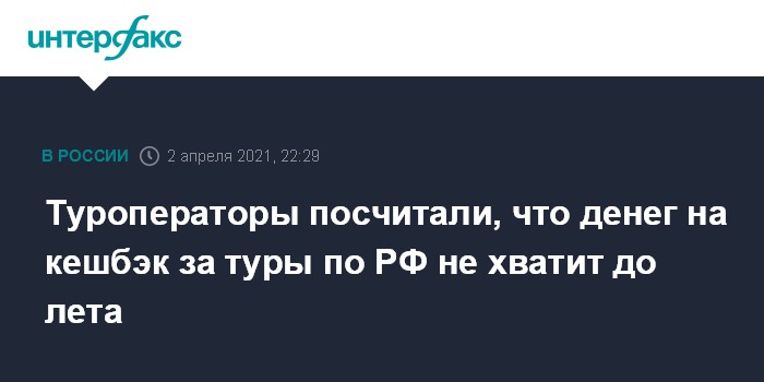 Москва. 2 апреля. INTERFAX.RU - Ажиотажный спрос на туры по России в рамках программы кешбэка может привести к тому, что выделенных правительством средств не хватит на возвраты туристам до окончания акции 15 июня - деньги кончатся раньше, считают опрошенные порталом "Интерфакс-Туризм" туроператоры.