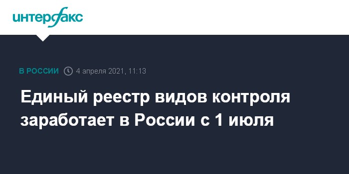 Москва. 4 апреля. INTERFAX.RU - С 1 июля этого года в России заработает Единый реестр видов контроля (надзора), постановление о порядке его формирования и ведения подписал премьер страны Михаил Мишустин.