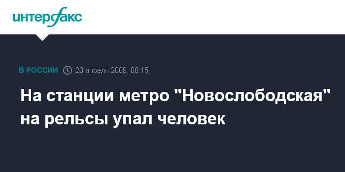 Инцидент произошел на станции "Новослободская" около 07:30. "Интерфакс" не располагает официальным подтверждением данной информации со стороны Московского метрополитена.