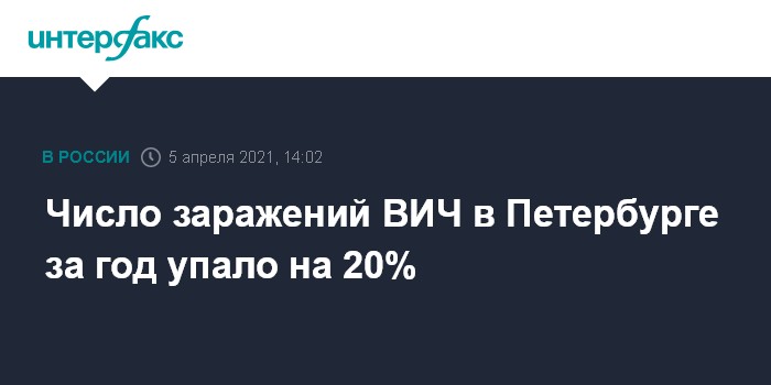 Москва. 5 апреля. INTERFAX.RU - За 2020 год в Петербурге зарегистрировали на 20% меньше первичных случаев заражения ВИЧ, чем в 2019-м, сообщила журналистам в понедельник начальник отдела по организации амбулаторной медицинской помощи комитета по здравоохранению Лариса Соловьева.