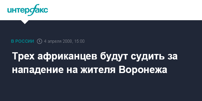 Воронеж. 4 апреля. INTERFAX.RU - Ленинский РОВД Воронежа предъявил обвинение трем африканским студентам, подозреваемых в ограблении местного жителя, сообщили "Интерфаксу" в ГУВД.