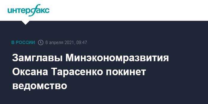 Замглавы Минэкономразвития Оксана Тарасенко покинет ведомство