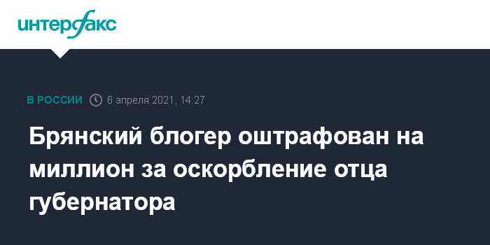 Брянский блогер оштрафован на миллион за оскорбление отца губернатора