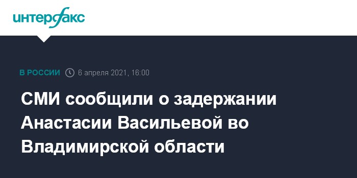 СМИ сообщили о задержании Анастасии Васильевой во Владимирской области