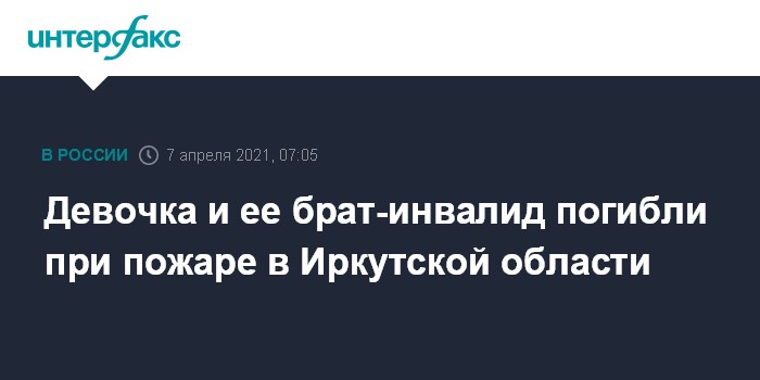Девочка и ее брат-инвалид погибли при пожаре в Иркутской области