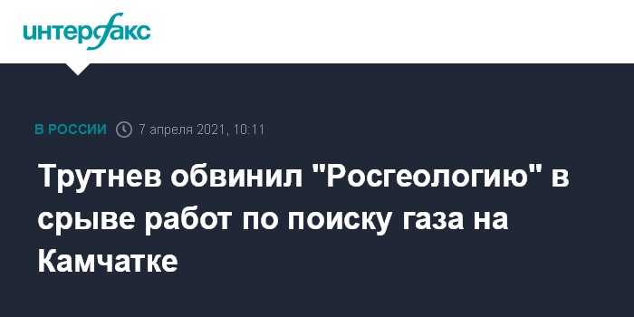 Москва. 6 апреля. INTERFAX.RU - "Росгеология" нарушает сроки выполнения работ по поиску дополнительных запасов газа на Камчатке, заявил вице-премьер, полпред президента РФ в Дальневосточном федеральном округе Юрий Трутнев.