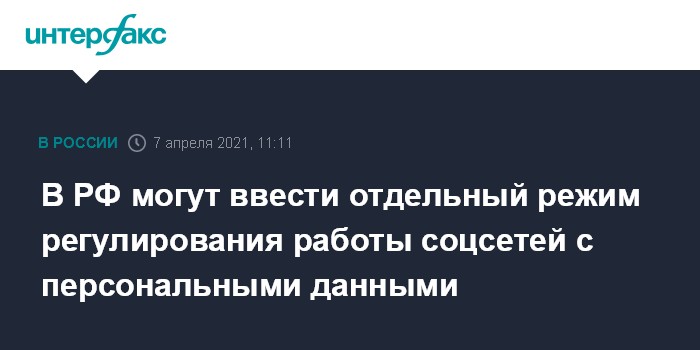 Москва. 7 апреля. INTERFAX.RU - Социальным сетям необходим отдельный режим регулирования персональных данных, в ближайшее время Минцифры РФ намерено выйти с соответствующими поправками в законодательство, заявил глава ведомства Максут Шадаев.