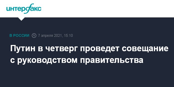 Москва. 7 апреля. INTERFAX.RU - Президент России Владимир Путин в четверг, 8 апреля проведет с руководством правительства совещание, на котором будут подведены итоги реализации посланий президента Федеральному Собранию 2019 и 2020 годов, сообщила пресс-служба Кремля в среду.