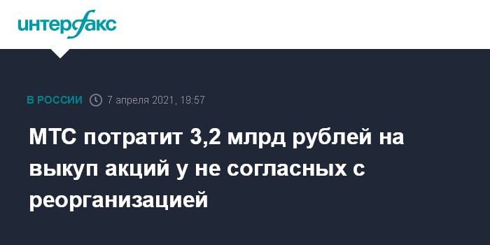 МТС потратит 3,2 млрд рублей на выкуп акций у не согласных с реорганизацией